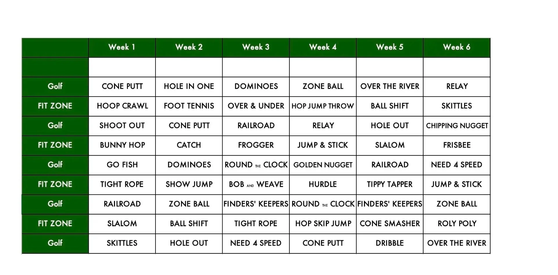 Typical 6-Week Curriculum